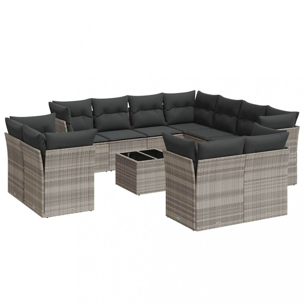 Set canapele de gradina cu perne, 12piese gri deschis poliratan