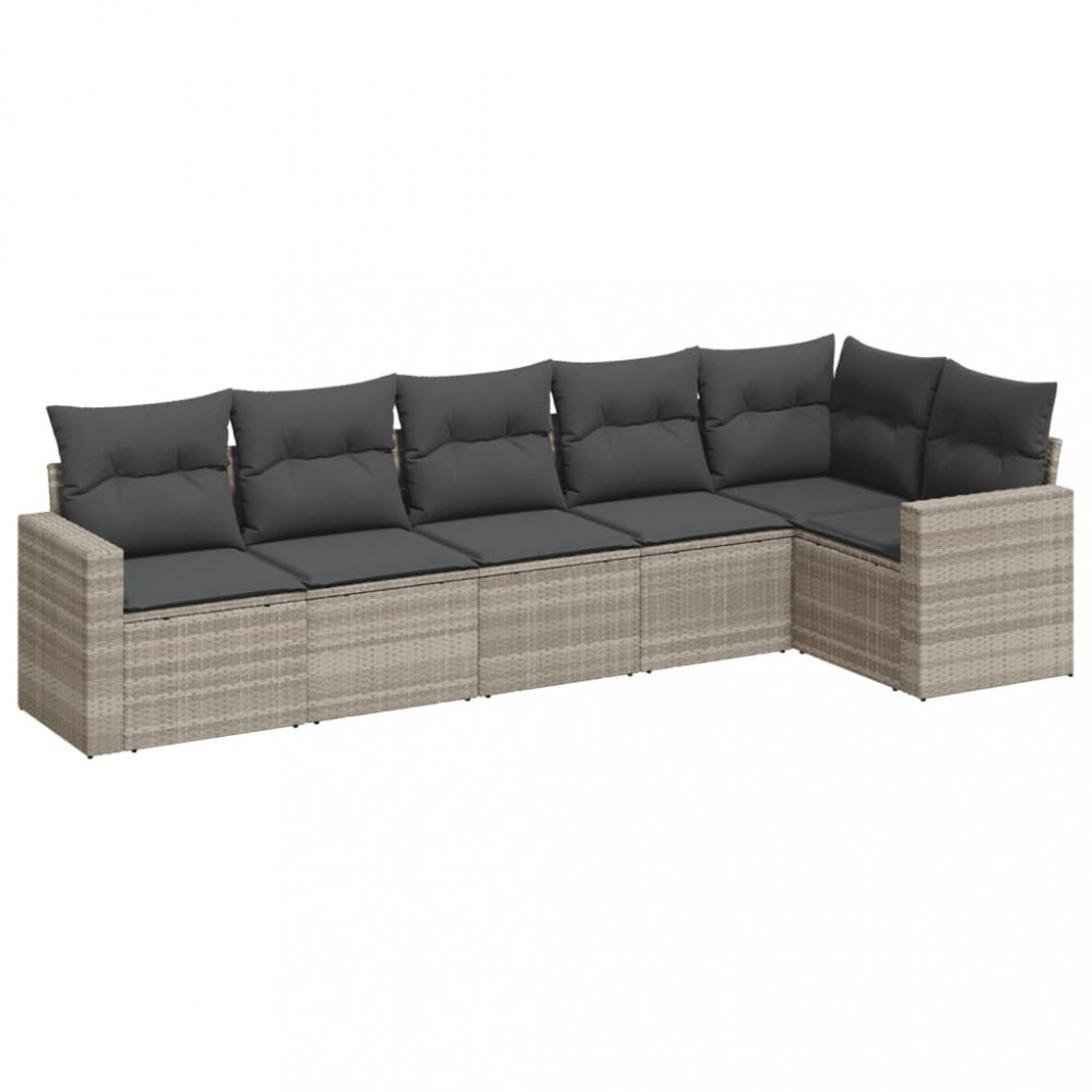 Set canapele de gradina cu perne, 6 piese gri deschis poliratan