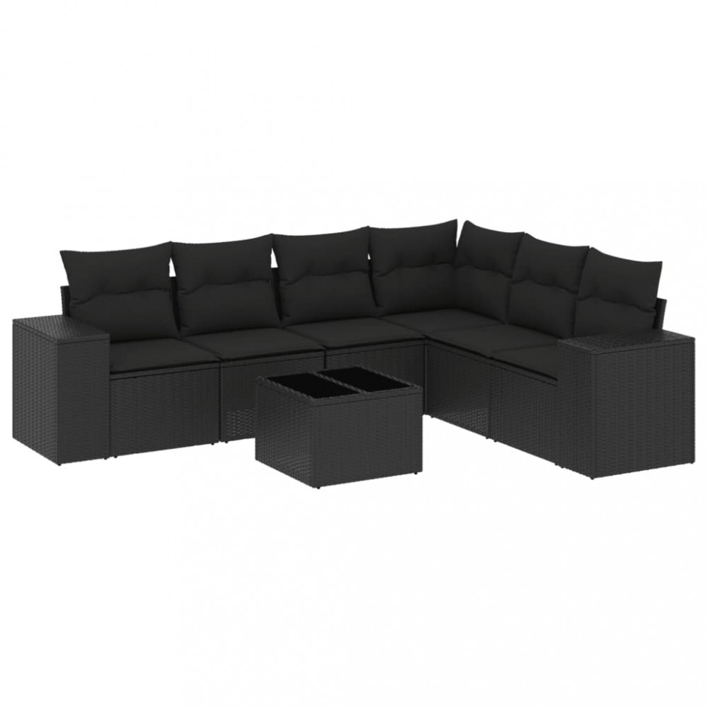 Set canapele de gradina cu perne, 7 piese, negru, poliratan