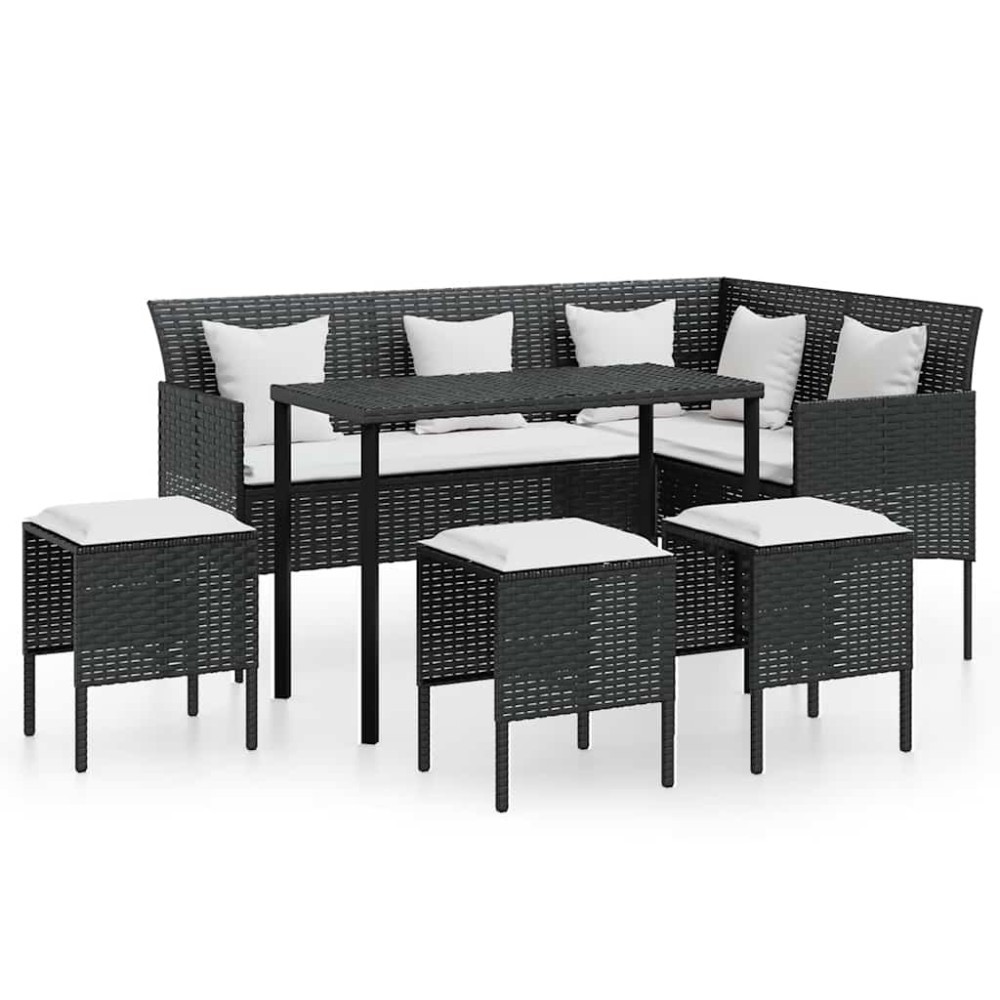 Set canapele gradina forma L cu perne 5 piese negru poliratan
