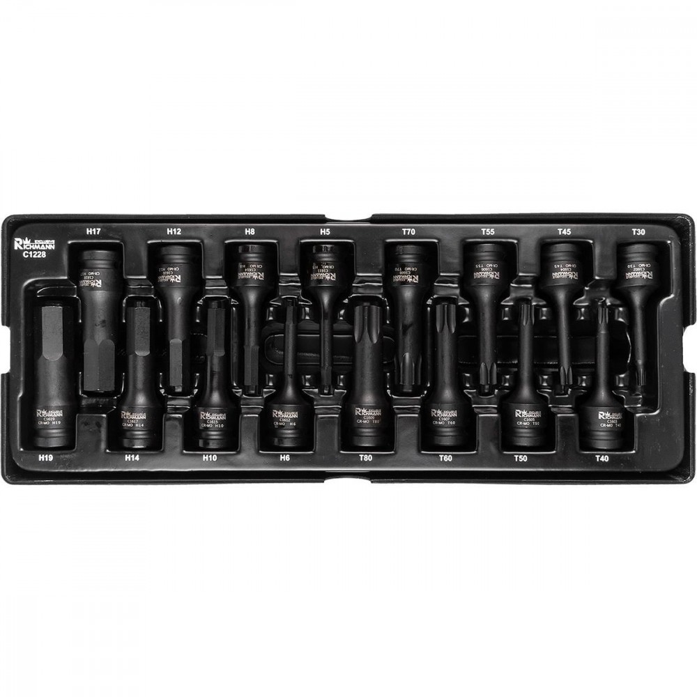 Set capete tubulare de impact TORX si IMBUS, sertar TIP A (385x150 mm) pentru dulap mobil, T30-T80, H5-H19, 1/2", 16 buc, RICHMANN EXCLUSIVE