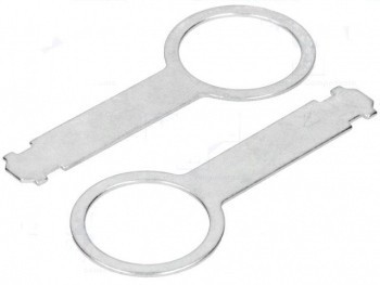 Set chei demontare radio Audi, VW 65.239 cheie pentru demontarea radioului de origine marca autovehiculului Audi, VW Set 2 bucati Trusa demontare radio pentru radiourile auto cu fantele verticale pentru deblocare. VW - Audi - Seat - Skoda 1995> Conținut: 2 bucăți