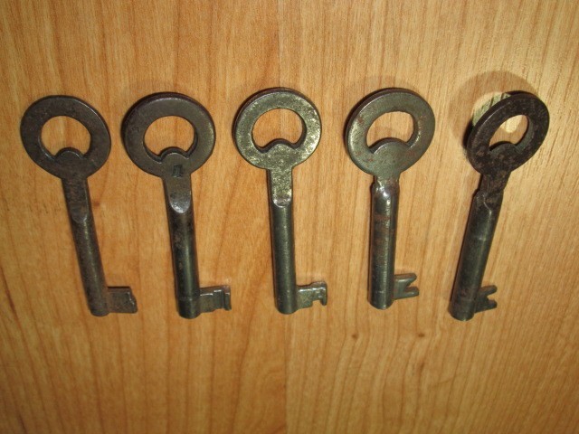 Set Chei vechi 5 buc. Marimi: lungime 6.2 cm, latime maner 2 cm, latime cap 1.4 cm.
