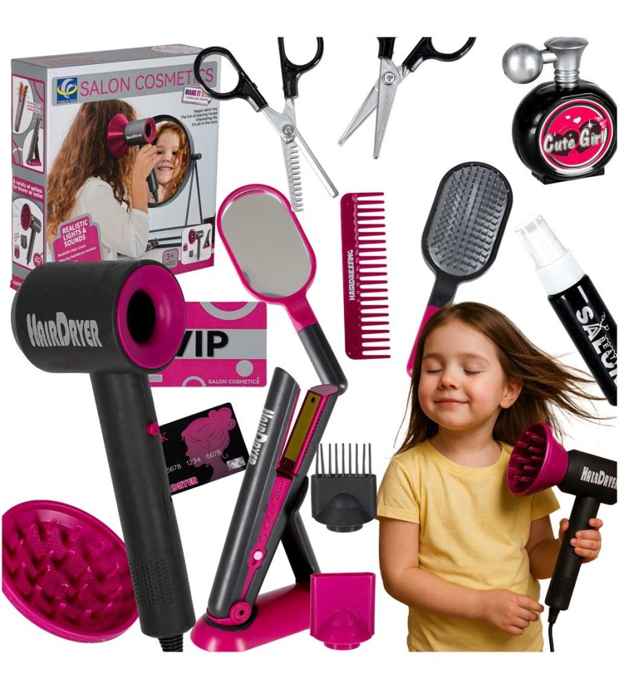 de îndreptat părul, piepteni, oglindă, pulverizator și multe altele. Fiecare piesă este realizată din