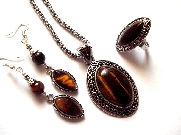 set colier, inel si cercei cu ochi de tigru ( pietre