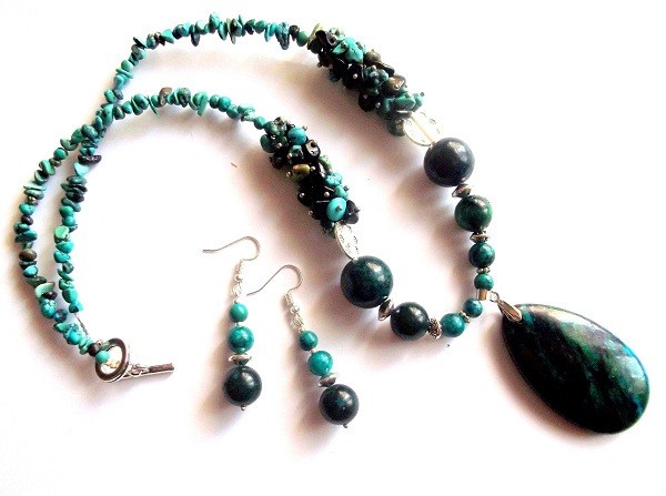 set colier si cercei cu crisocolla ( pietre semipretioase)