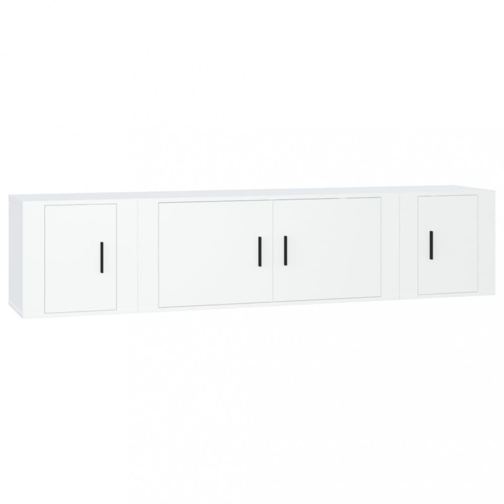 Set comoda TV, 3 piese, alb, lemn prelucrat