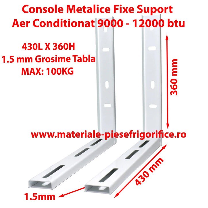 Caracteristici Produs: Set Console Metalice Fixe, Suporti Aer Conditionat, 430L x 360H , 9000,12000 BTU