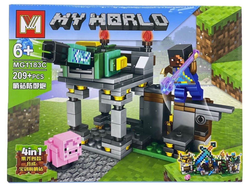 Set constructie Minecraft MyWorld MG1183C care contine 209 de piese. Este un set de constructie destinat celor incepatori in tainele micilor piese de construit tip Lego.Este recomandat copiilor peste 6 ani.