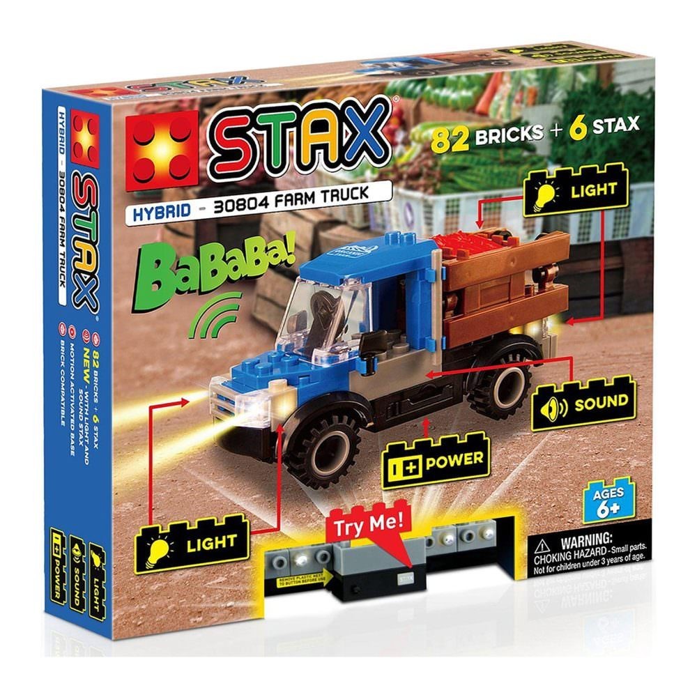 Set constructie pentru copii, Camioneta cu lumini si sunete Stax, 82 blocuri de constructie si 6 STAX, +6 ani