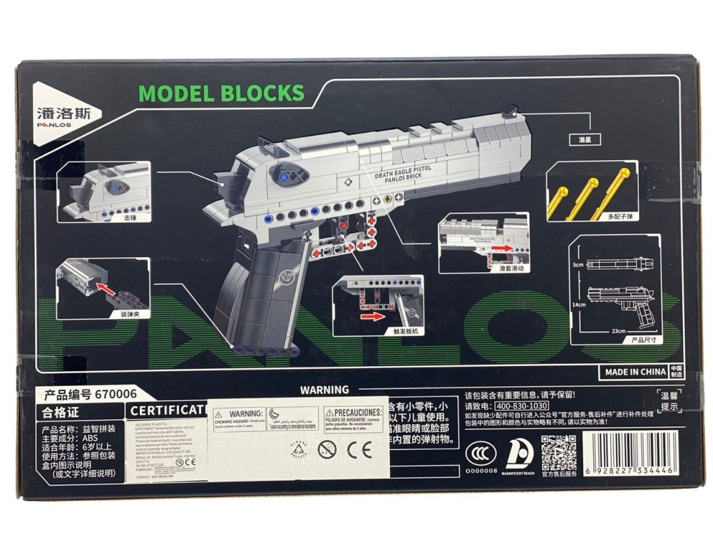 Set constructie gen lego pistol tip revolver cu accesorii si functii interactive NO670006 Descopera un set inovator de constructie dedicat pasionatilor de modele si colectionarilor! Acest set Model Blocks permite asamblarea unui pistol tip revolver cu un design detaliat si functionalitati interactive. Setul include: Componentele necesare pentru a construi un revolver realist 360 piese. Accesorii speciale pentru personalizare si utilizare. Manual de instructiuni usor de urmat pentru asamblare rapida. Caracteristici: Design autentic: Reproduce cu fidelitate detalii ale unui revolver clasic, ideal pentru colectionari sau proiecte DIY. Functii interactive: Include mecanisme mobile, care imita functionalitatea unui revolver real. Materiale premium: Realizat din plastic ABS durabil, sigur si ecologic, potrivit pentru utilizare indelungata. Dimensiuni compacte: Produsul final masoara aproximativ 23 cm lungime, fiind perfect pentru a fi expus sau integrat in joaca tematica. Recomandat pentru copiii peste 14 ani, acest set nu doar stimuleaza creativitatea si dexteritatea, ci este si o modalitate distractiva de a invata despre structura mecanismelor. Un cadou ideal pentru iubitorii de constructii, modele si jocuri interactive!