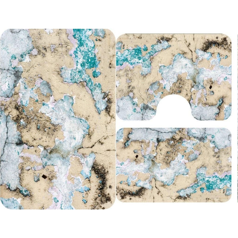 Set Covorașe Baie 3 piese: 60x90cm, 60x45cm, 60x45cm, Piatră crem/albastru