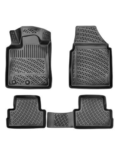 Sunt create dupa forma si dimensiunea podelei fiecarui autoturism. Bordura cu inaltimea de 3 cm a covoraselor retine apa, zapada, praful si alte impuritati. Datorita compozitiei chimice a materialului, covorasele nu degaja miros neplacut in interiorul autoturismului. Isi pastreaza vreme indelungata proprietatile initiale si pot fi curatate cu usurinta cu detergenti. Sunt impermeabile si rezistente la temperaturi inalte si joase. Sunt prevazute cu sistem anti-alunecare si sistem de fixare in podea. Covorasul din partea conducatorului auto are o extindere speciala, care acopera complet zona de odihna a piciorului stang. Covorasele din spate sunt legate intre ele printr-o parte ce acopera tunelul de mijloc. Sunt create din material de inalta calitate, rezistent, durabil si reciclabil -TPE; Culoare: Negru