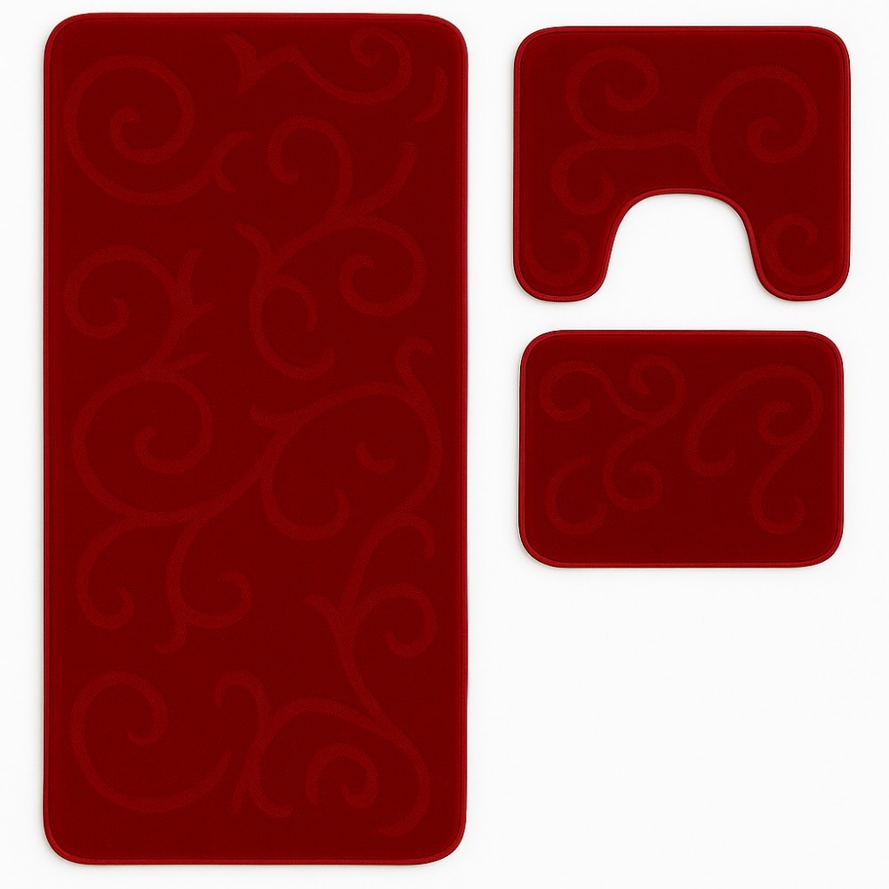 Set covorase baie 3 piese Model Baroc, Rosu 60x100cm