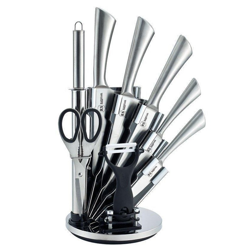Set cutite Bohmann, 9 piese cu suport acrilic, Argintiu