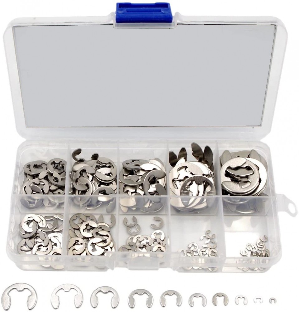 Kit asortiment E-Clip din oțel inoxidabil 120 buc 1,5 2 3 4 5 6 7 8 9 10 mm Circlip