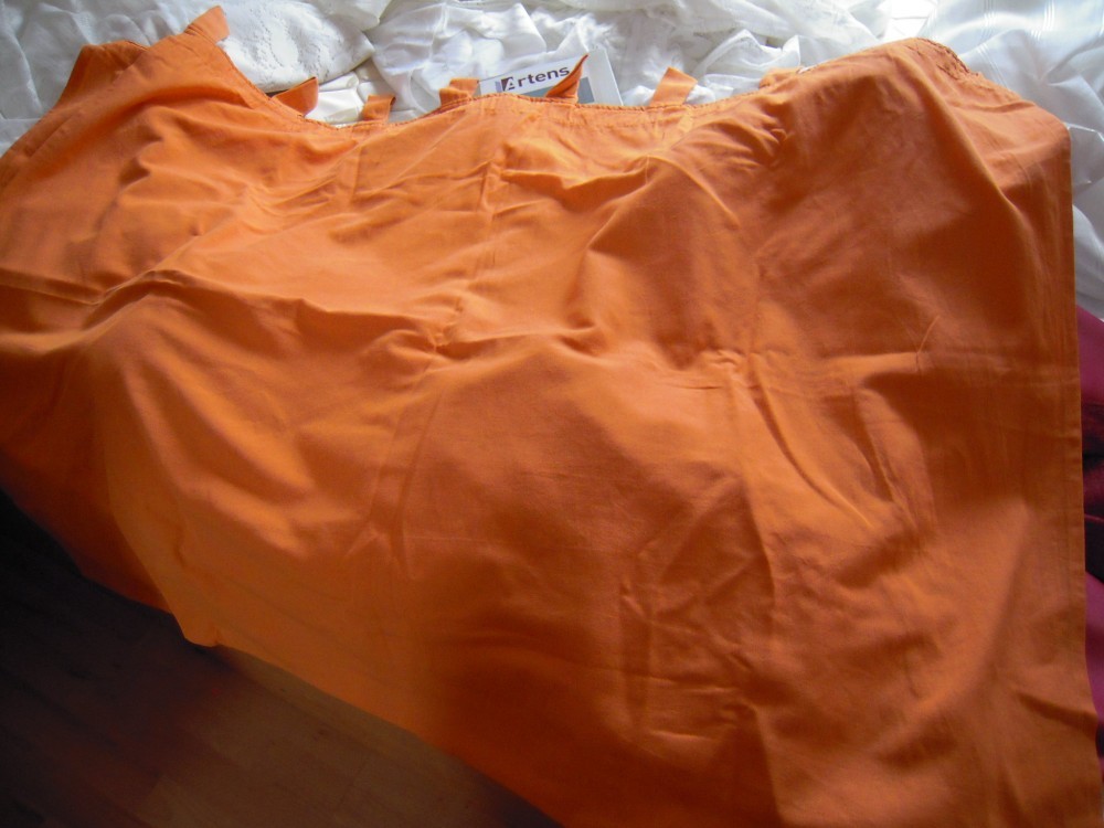 Set de 2 draperii portocalii din bumbac, latime 135 cm, H= una 200cm, alta 220 cm