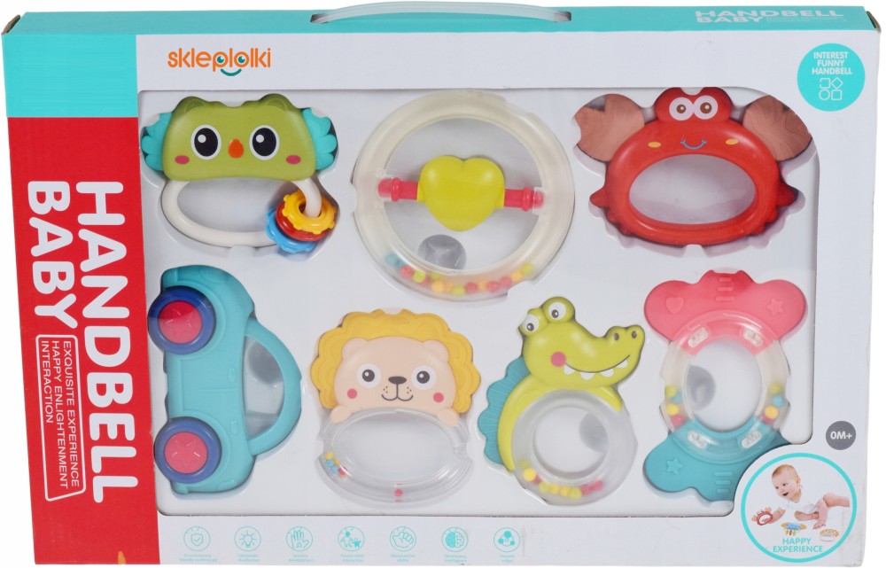 SET DE ZGOMOTE ȘI JUCĂRII SENSORIALE PENTRU BEBELUȘI – 7 PIESE