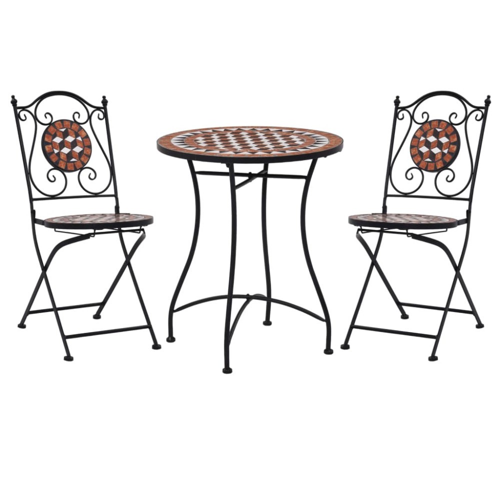 Set de bistro mozaic, 3 piese, cărămiziu, placă ceramică
