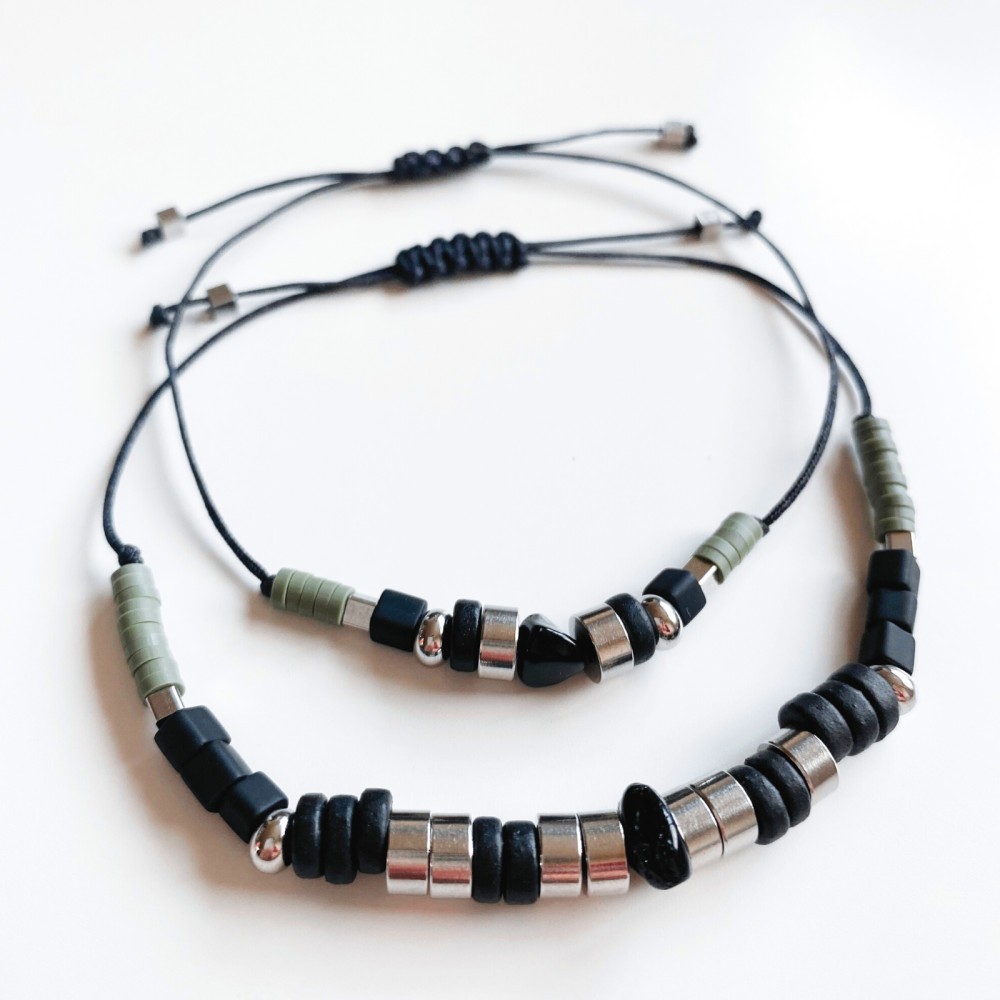 Set de bratari cuplu din otel inoxidabil cu Obsdian auriu - Protectie energie negativa si stres