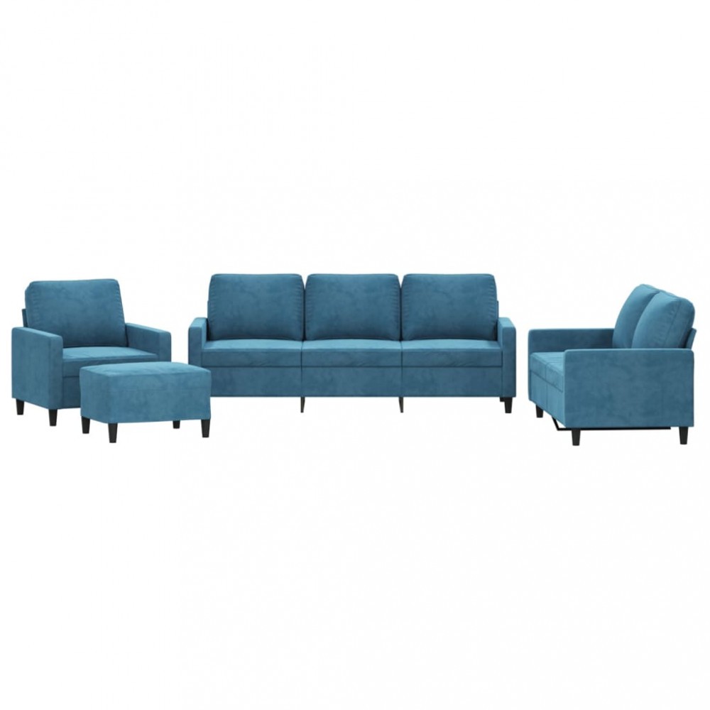 Set de canapele cu perne, 4 piese, albastru, catifea