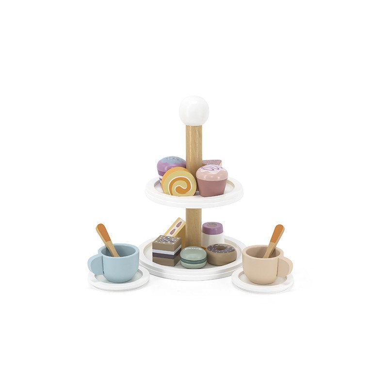 Set de tort din lemn - Perfectiunea pentru timpul de ceai al dupa-amiezii! Acest set de tort din lemn este mereu gata de servire si va tine micutii ocupati ore intregi. Include 9 prajituri, 2 cesti, 2 farfurii, 2 linguri si un suport de prajituri pe 2 nivele. Dimensiunile potrivite si marginile netede sunt ideale pentru mainile mici, asigurand o prindere usoara. Materialele non-toxice garanteaza joaca in siguranta, chiar si atunci cand jucaria este atinsa de gurita celor mici. Ofera o activitate sociala distractiva alaturi de prieteni, incurajand imaginatia creativa, dezvoltarea sociala si a limbajului, si ajutand la recunoasterea culorilor. Adaugati acum acest set de tort din lemn in cosul de cumparaturi si oferiti-le copiilor o experienta de joaca sigura si educativa! Jucarie educativa din lemn, Montessori. Material: lemn Dimensiuni: D18 x 25,7 cm Varsta recomandata: 18 luni+ Ambalare: 1 colet, 0,600 kg AVERTISMENT! Contraindicat copiilor mai mici de 24 luni. Jucaria/produsul poate contine piese mici care se pot inghiti sau inhala existand pericolul de sufocare sau nu este potrivita copiilor mai mici de luni. Toate jucariile marca VIGA sunt fabricate din lemn de calitate cu vopsele si cerneluri non-toxice, supuse testelor de siguranta respectand standardele pentru jucarii ale Uniunii Europene EN71 si ASTM. Nu lasati ambalajul produsului la indemana copiilor. Indepartati orice ambalaj al produsului inainte de a da jucaria copilului. Va recomandam sa supravegheati copilul in timp ce se foloseste produsul. Pastrati instructiunile si etichetele pentru referinte viitoare. Feriti produsul de foc, temperaturi ridicate si umiditate.