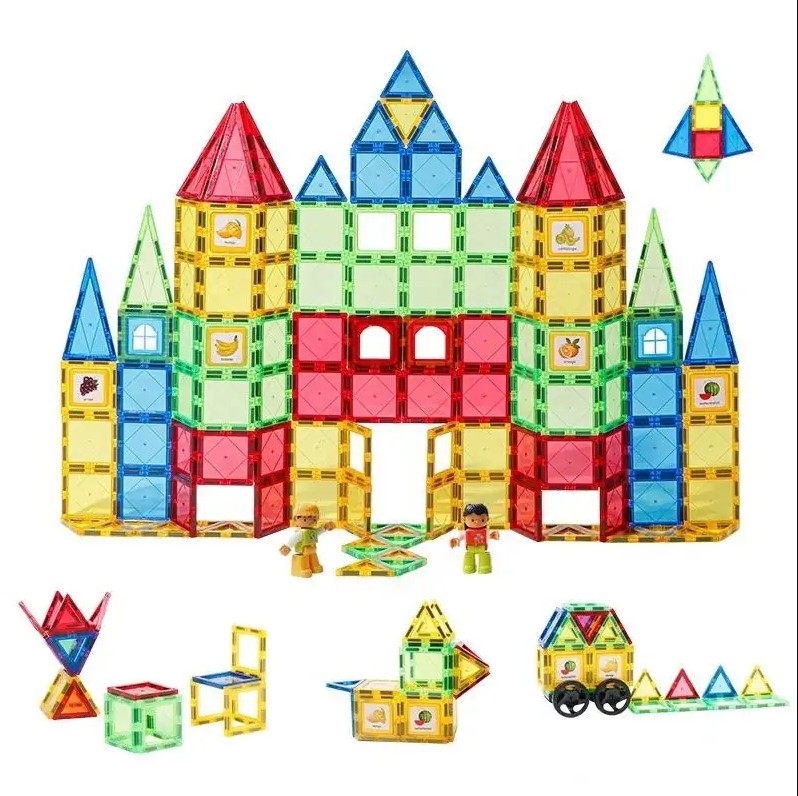 Set de constructie 2D 3D din placi magnetice, 101 piese, joc educativ, cadou fete baieti, multicolor, 3 -13