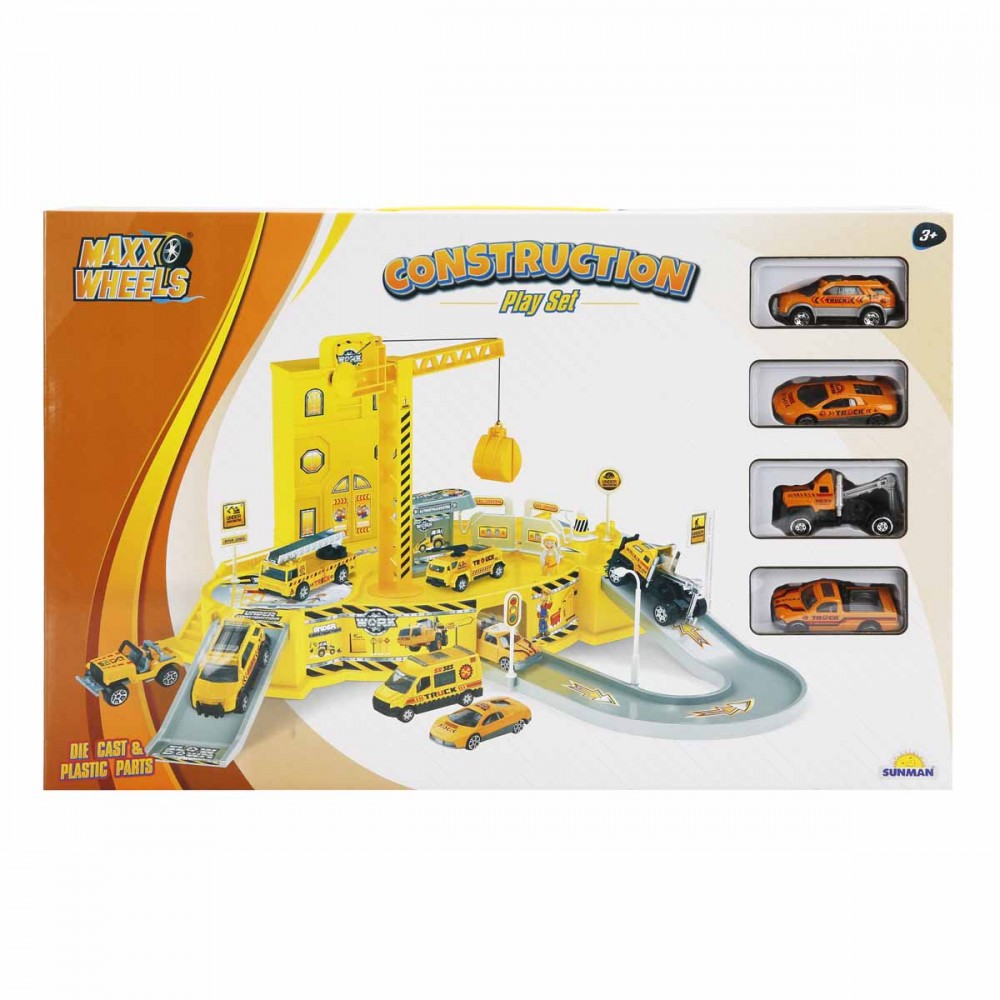 Set de constructie, Maxx Wheels, Garaj si 4 masinute