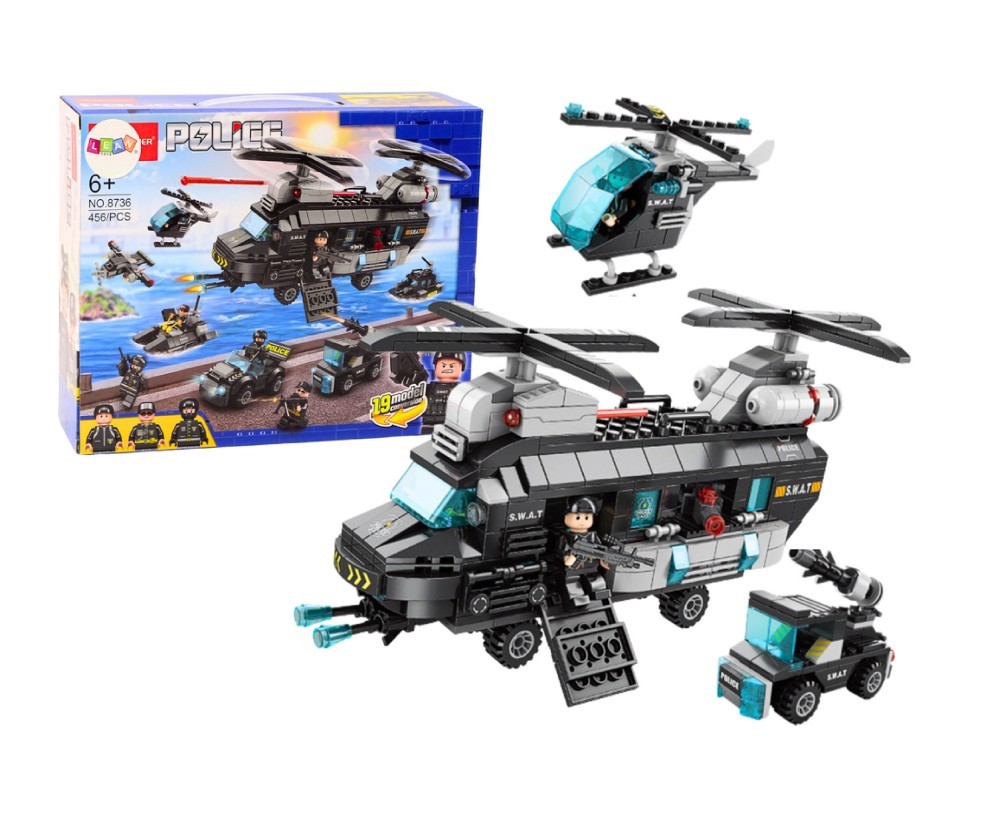 Acest set de constructie cu forte speciale este o propunere unica pentru toti fanii constructiilor si ai jocurilor cu blocuri. Acest set bogat echipat este format din 456 de piese care va permit sa creati o varietate de vehicule.. Acest set de constructie cu tematica de forte speciale este o propunere unica pentru toti fanii constructiilor si ai jocurilor cu blocuri. Acest set complet este format din 456 de piese, permitandu-va sa creati o varietate de vehicule si masini utilizate de unitati operationale specializate.. Setul permite crearea a pana la 19 combinatii diferite de vehicule ale fortelor speciale. Acest lucru le permite copiilor sa se bucure de creativitate nelimitata si de ore intregi de distractie. Putem crea un elicopter al fortelor speciale, multifunctional - ideal pentru misiuni de salvare si operatiuni speciale , un avion de lupta rapid si agil , echipat cu cea mai recenta tehnologie de lupta.Vehicule de lupta: Diverse vehicule terestre si maritime, inclusiv vehicule blindate de lupta, gata de actiune in orice conditii.. Fiecare dintre aceste vehicule poate fi asamblat conform instructiunilor incluse si apoi personalizat si decorat folosind autocolantele incluse. Construirea blocurilor dezvolta abilitati motorii fine si priceperea motrica fina. Copiii invata sa-si creeze propriile structuri, ceea ce le stimuleaza creativitatea si imaginatia. Instructiunile de constructie si procesul de asamblare ii invata pe copii sa planifice, sa secventieze si sa rezolve probleme. Combinand distractia cu invatarea, copiii invata si despre diverse vehicule si utilizarile lor in fortele speciale.. Acest set de constructie cu tematica fortelor speciale este un cadou perfect pentru copiii carora le place sa construiasca si sa se joace cu blocuri. Cu posibilitatea de a crea pana la 19 vehicule diferite, setul ofera ore intregi de joaca creativa si invatare. Componentele de inalta calitate, autocolantele incluse si instructiunile detaliate il fac ideal pentru tinerii constructori si pasionatii de actiune.. Setul include:. set de constructie. set de autocolante. manual de utilizare. ambalaj original. Dimensiunile pachetului:30 cm x 23 cm x 9 cm. Este certificata CE si respecta standardul EN71 . Jucaria este destinata copiilor cu varsta peste 6 ani.