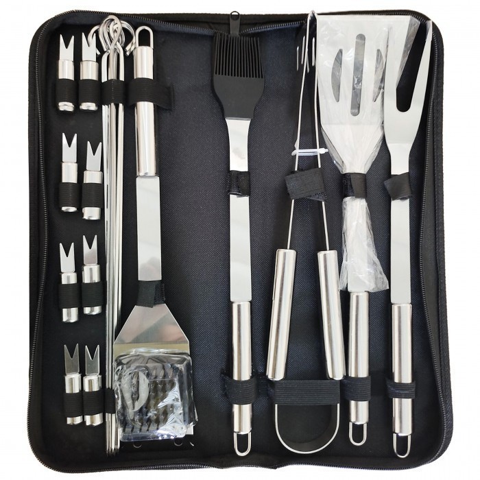 Setul de accesorii este o soluție practică pentru grătar. Accesoriile vă vor servi fiabil în timpul grătarului și pot fi folosite și în bucătărie. Conținutul setului: