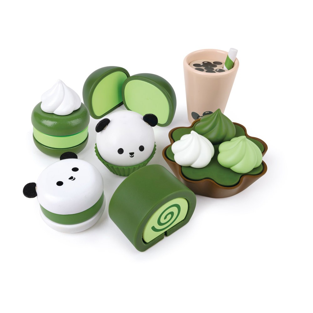 Micutul tau se va distra atat de mult cu aceasta jucarie adorabila de joc de rol, incat nici nu va sti ca se implica intr-adevar intr-o dezvoltare cruciala. Abilitatile lor motorii fine se vor imbunatati de fiecare data cand se joaca! Setul de desert cu ceai verde are un cupcake dragut cu panda, un tort rotund cu panda, rulada elvetiana si un tort cu flori.