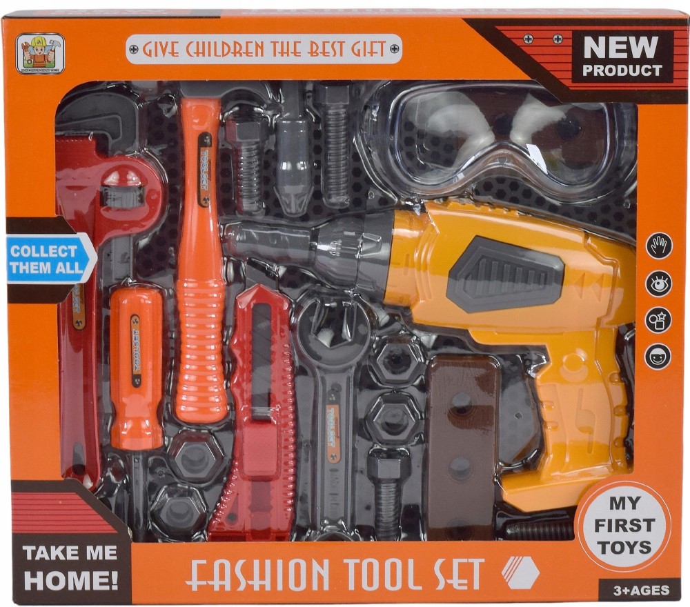 Set super DIY de unelte sigure: burghiu, ciocan, cheie