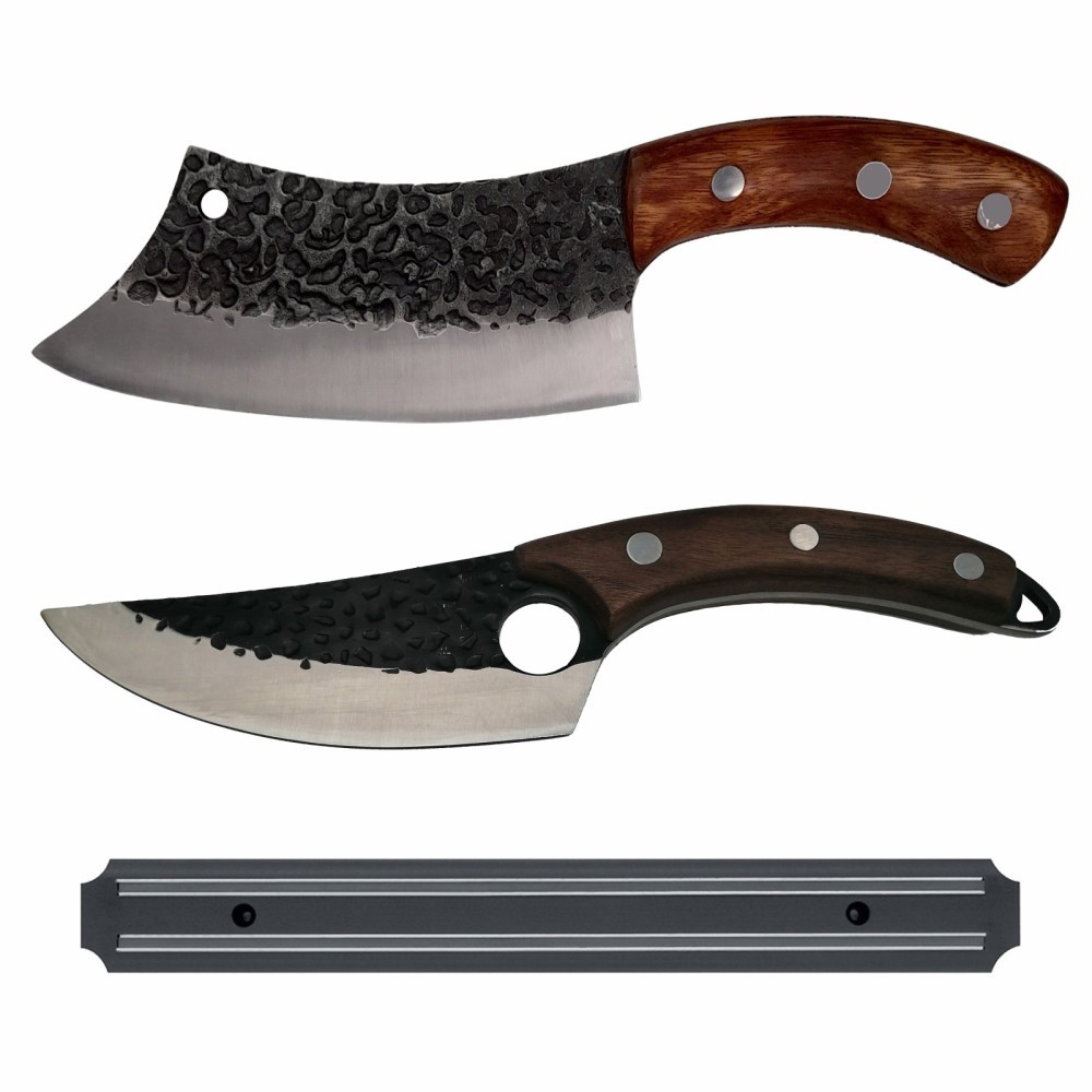 Set de macelarie DEPOX®, doua cutite bucatar si suport magnetic, otel inoxidabil