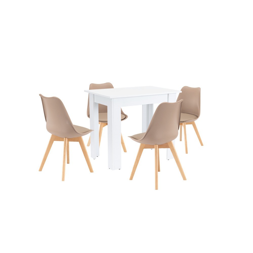 Setul de masă Amina 4 în 1 de la marca Leziter este o alegere perfectă pentru apartamente moderne, restaurante și bucătării elegante de birou. Setul este format din 4 scaune și 1 masă, o combinație armonioasă între popularul scaun de dining Silla și masa standard Yorki, combinând funcționalitatea cu un design atemporal. Setul de masă este ideal pentru 4 persoane și, datorită dimensiunilor sale, poate fi amplasat practic în camere mai mici.