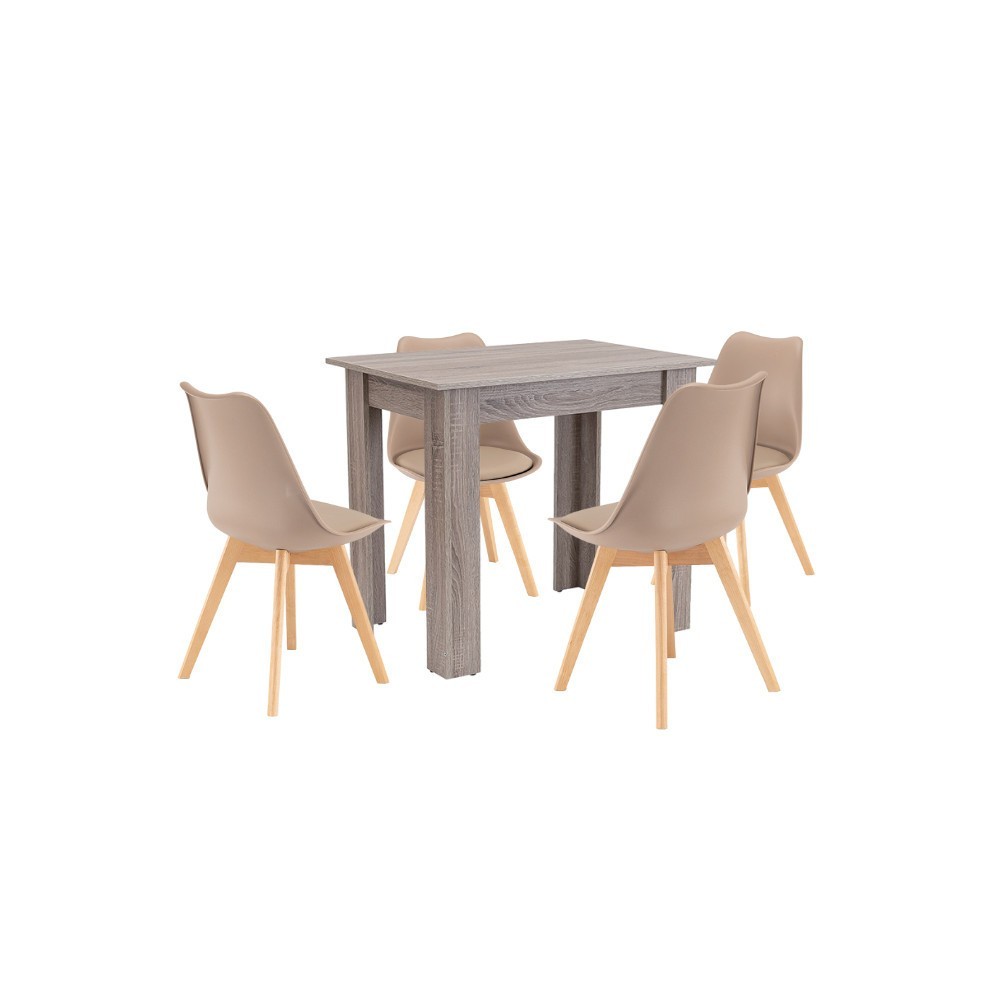 Setul de masă Amina 4 în 1 de la marca Leziter este o alegere perfectă pentru apartamente moderne, restaurante și bucătării elegante de birou. Setul este format din 4 scaune și 1 masă, o combinație armonioasă între popularul scaun de dining Silla și masa standard Yorki, combinând funcționalitatea cu un design atemporal. Setul de masă este ideal pentru 4 persoane și, datorită dimensiunilor sale, poate fi amplasat practic în camere mai mici.