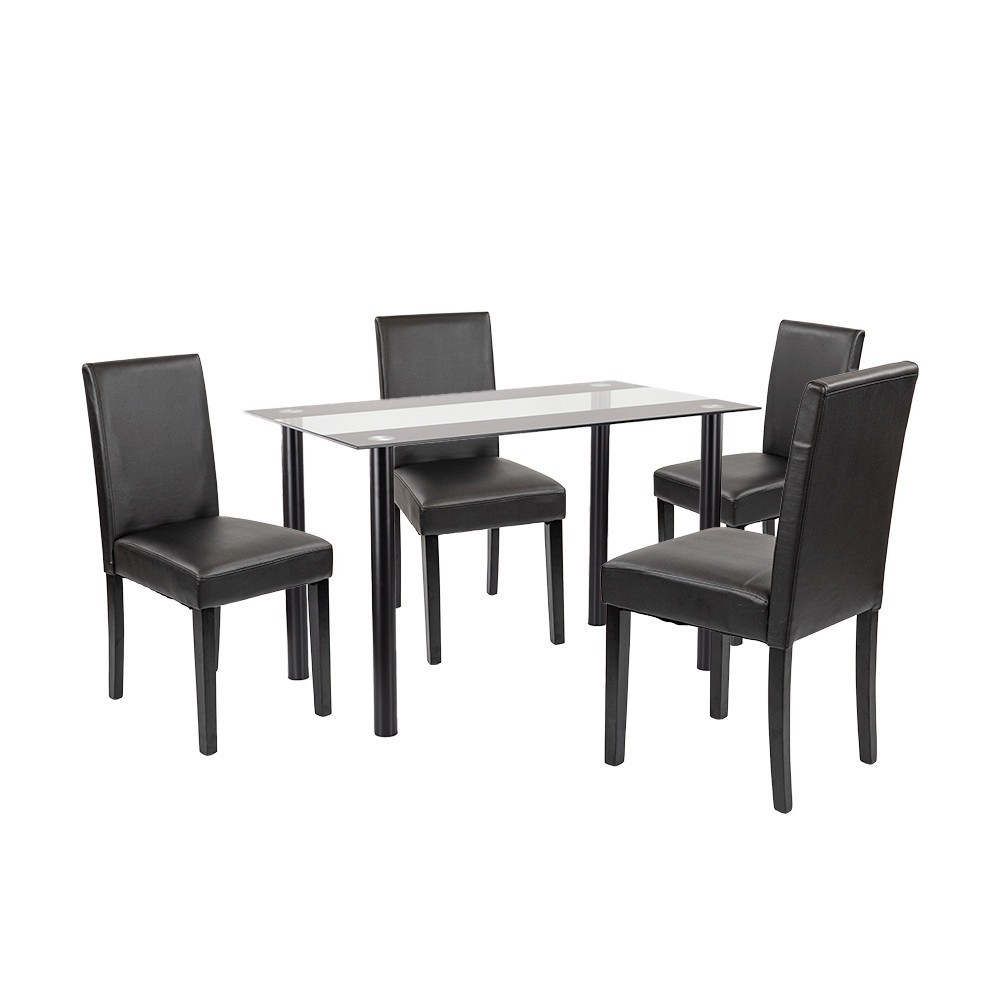 Setul include și patru scaune Leziter Kelly, tapițate cu piele ECO neagră. Pe lângă aspectul elegant, aceste scaune sunt extrem de ușor de curățat. Șezutul din spumă cu grosimea de 4 cm oferă confort chiar și în timpul meselor mai lungi, iar picioarele stabile din lemn de pin, cu o capacitate de încărcare de 120 kg, garantează fiabilitate pe termen lung.