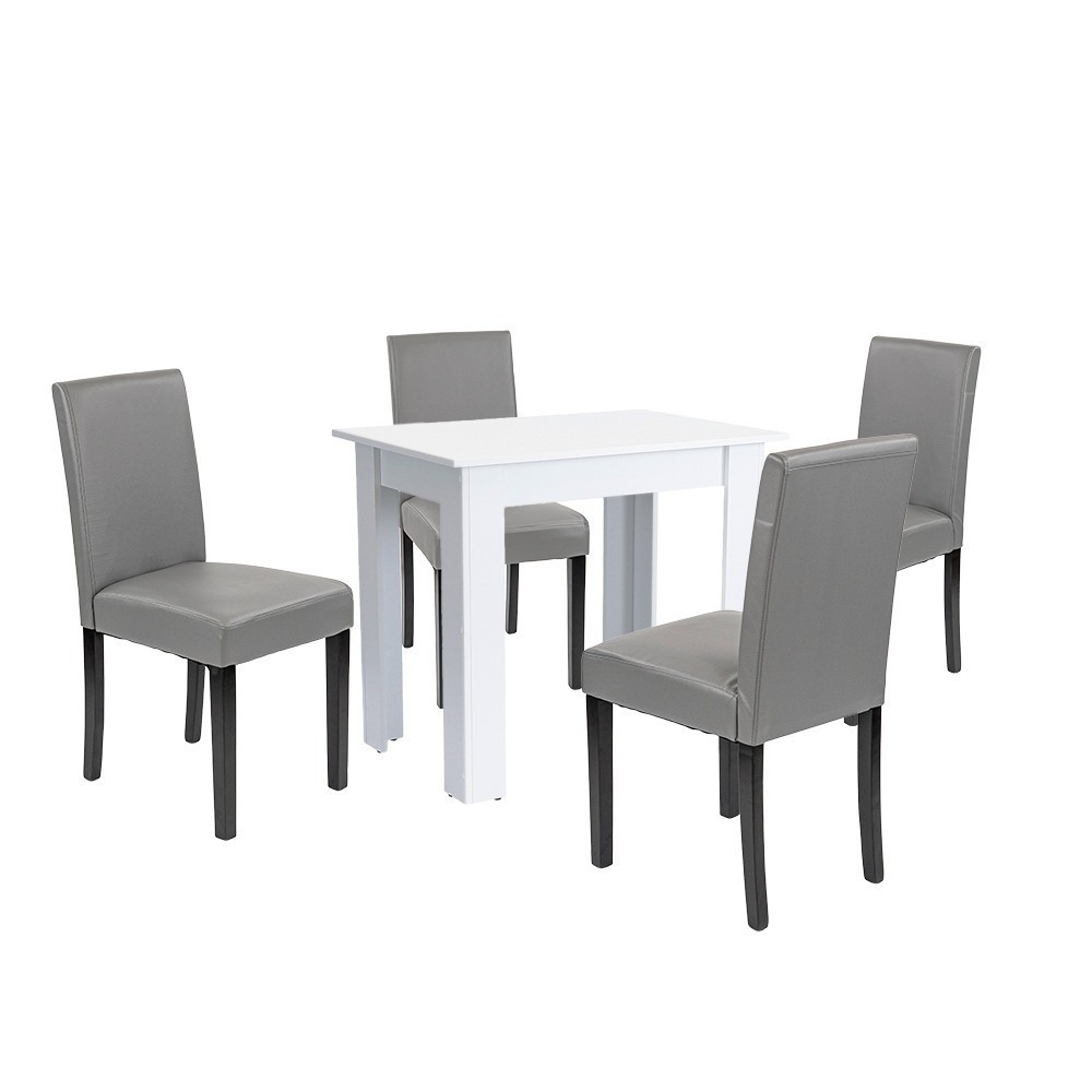 Setul de masă cu 4 locuri Leziter Leon are tot ce vă așteptați de la o piesă de mobilier modernă și fiabilă. Masa este fabricată din lemn de mobilier alb, rezistent, și măsoară 86x60x76 cm, așa că se potrivește perfect în camere mai mici, oferind în același timp un spațiu confortabil pentru mesele comune. Designul montat pe panou permite o asamblare rapidă și ușoară, în timp ce întăriturile metalice ale colțurilor garantează stabilitatea și longevitatea.