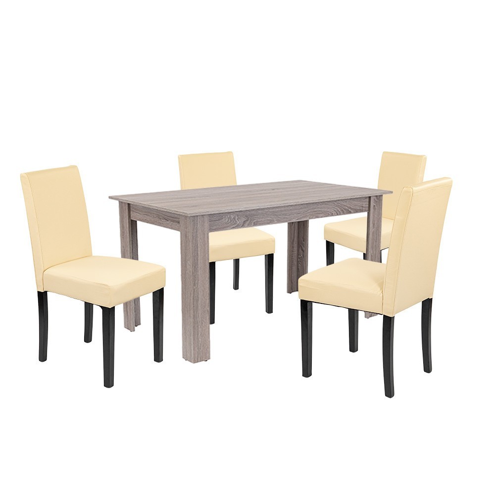 Setul include patru scaune Leziter Kelly, care, datorită tapițeriei din piele ECO bej, sunt nu doar elegante, ci și extrem de ușor de curățat. Șezutul gros din spumă, de 4 cm, oferă confort chiar și în timpul unei cine mai lungi, iar picioarele stabile din lemn de pin, cu o capacitate de încărcare de 120 kg, rămân tovarăși de încredere chiar și în timpul utilizării intense.