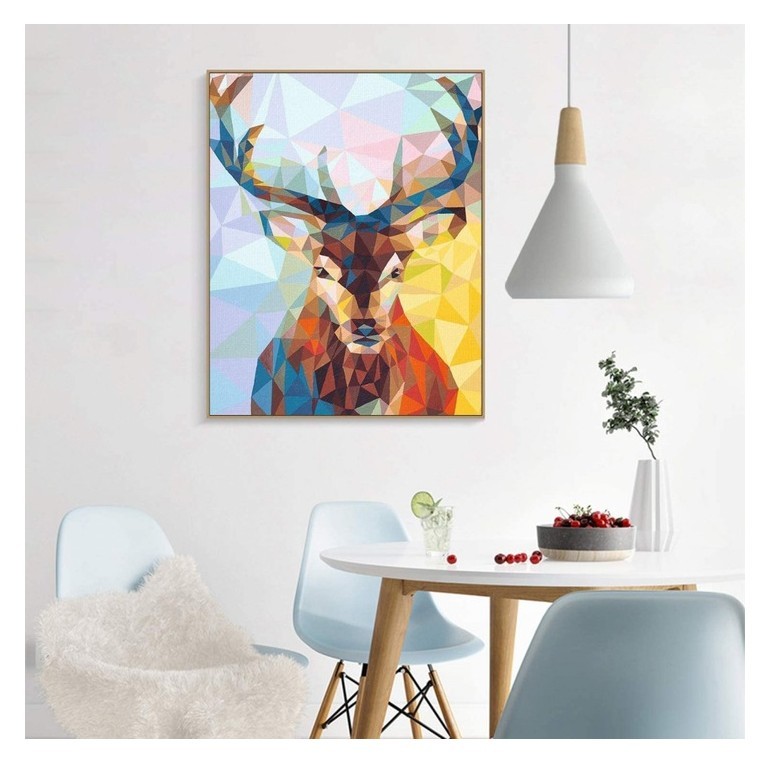 Set de pictura cu numere, model cerb, 41 x 51 cm, vopsea in ulei, multicolor