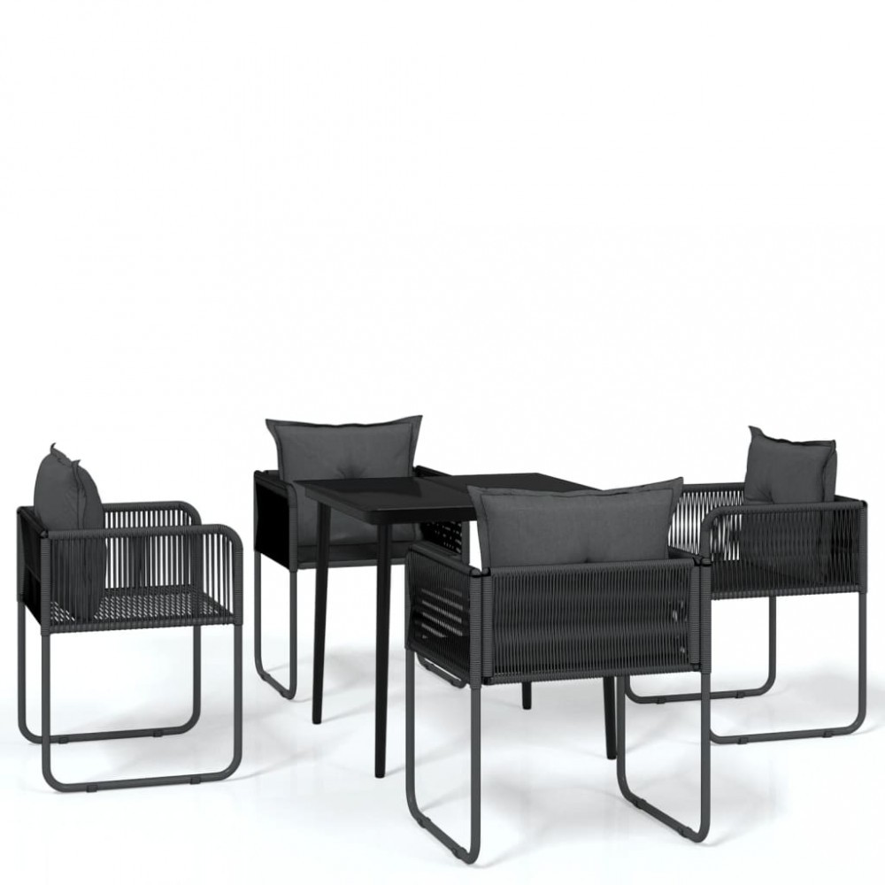 Acest set de mobilier de gradina este fabricat dintr-un cadru de otel vopsit electrostatic, ceea ce il face robust si stabil pentru utilizarea zilnica in exterior. Blatul mesei din sticla neteda este usor de curatat cu o carpa umeda si perfect pentru plasarea mancarurilor, bauturilor sau a obiectelor decorative. Scaunele de terasa sunt fabricate din ratan PE, fiind usoare si rezistente la apa. In plus, pernele pentru spate ofera confort suprem la sedere, in timpul dvs. de relaxare.