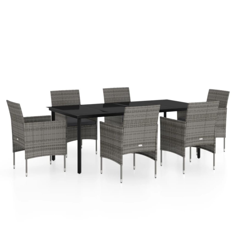 Set de servit masa pentru gradina, 7 piese, gri si negru