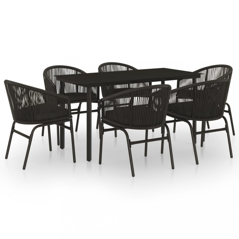 Set de servit masa pentru gradina, 7 piese, negru
