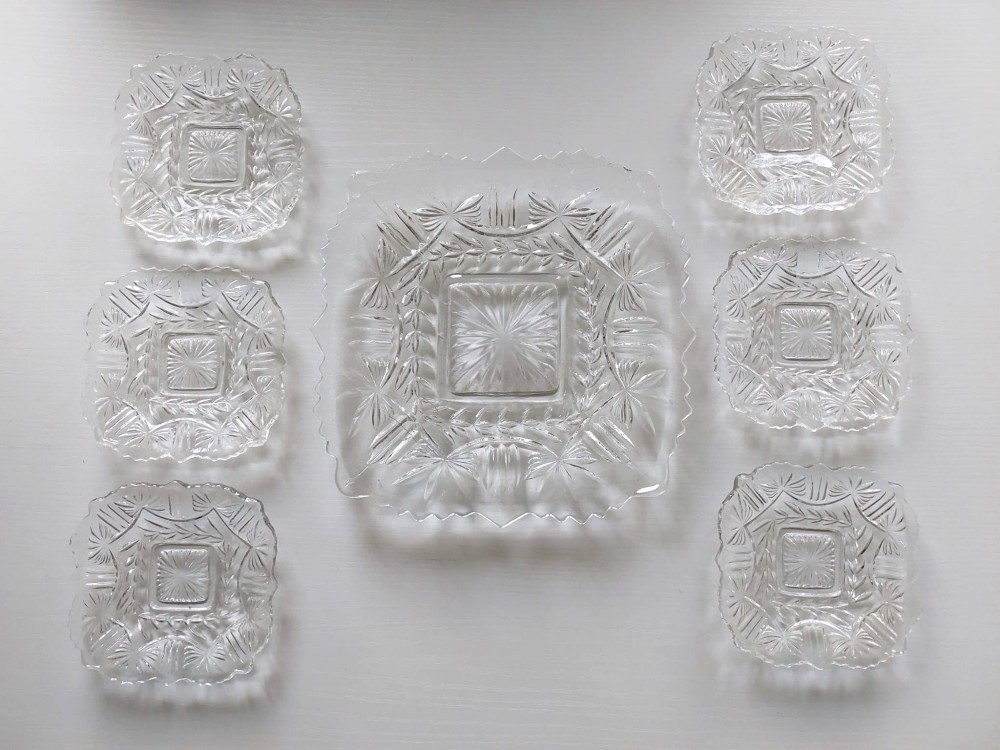 Set de sticla platou prajitura / tort + 6 farfurii tort