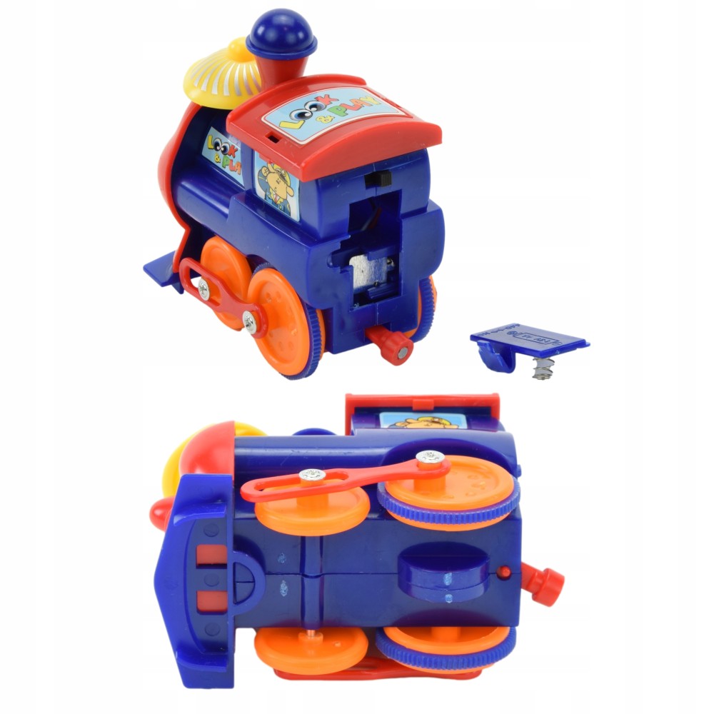 ✅ Locomotivă alimentată cu baterii – odată pornită, rulează singură pe șine.