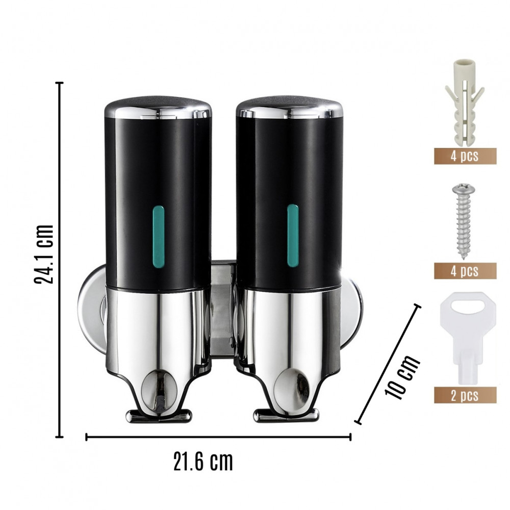Set dispenser gel de dus, sampon, sapun lichid, balsam sau conditioner pentru baie, bucatarie, hotel, 2 X 500 ml, negru