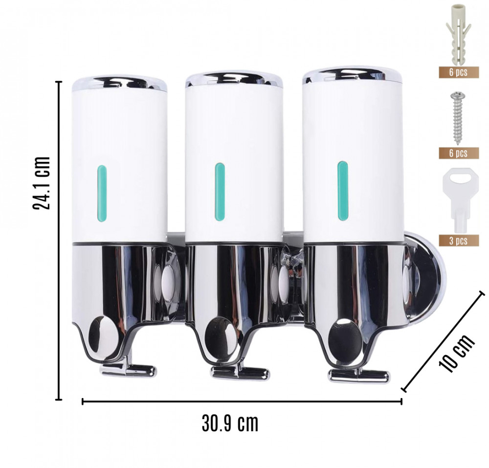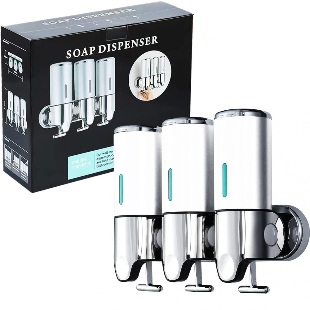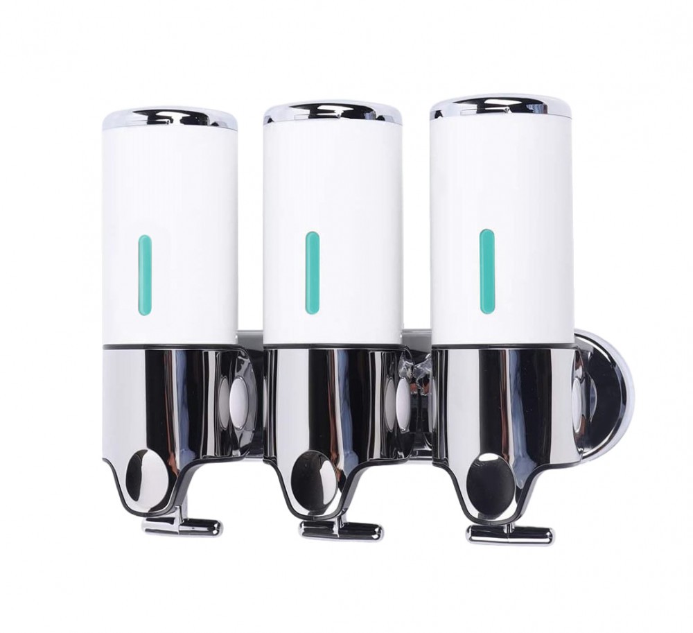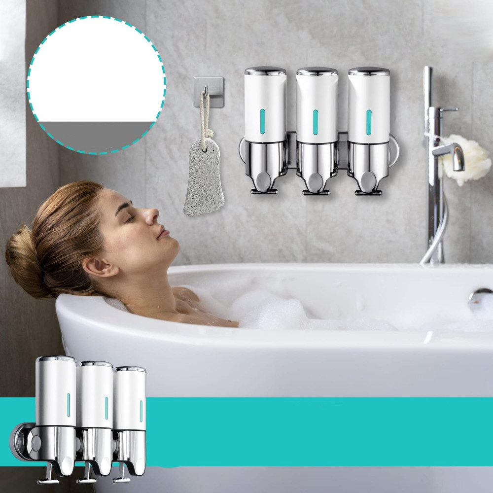 Set dispenser gel de dus, sampon, sapun lichid, balsam sau conditioner pentru baie, bucatarie, hotel, 3 X 500 ml, alb