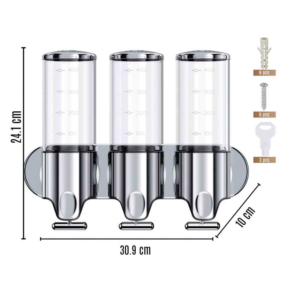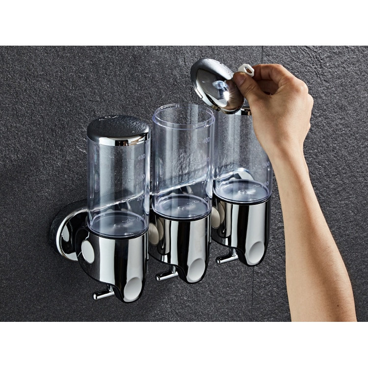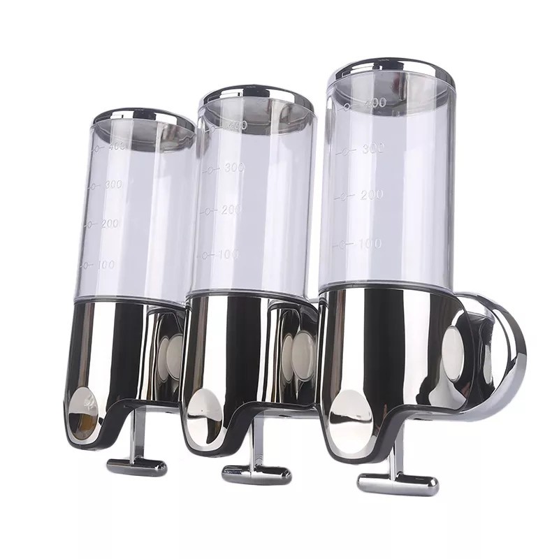 Set dispenser gel de dus, sampon, sapun lichid, balsam sau conditioner pentru baie, bucatarie, hotel, 3 X 500 ml, transparent