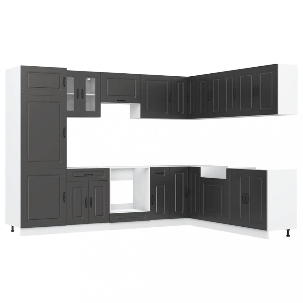 Set dulap de bucatarie 14 piese „Kalmar” lemn negru prelucrat