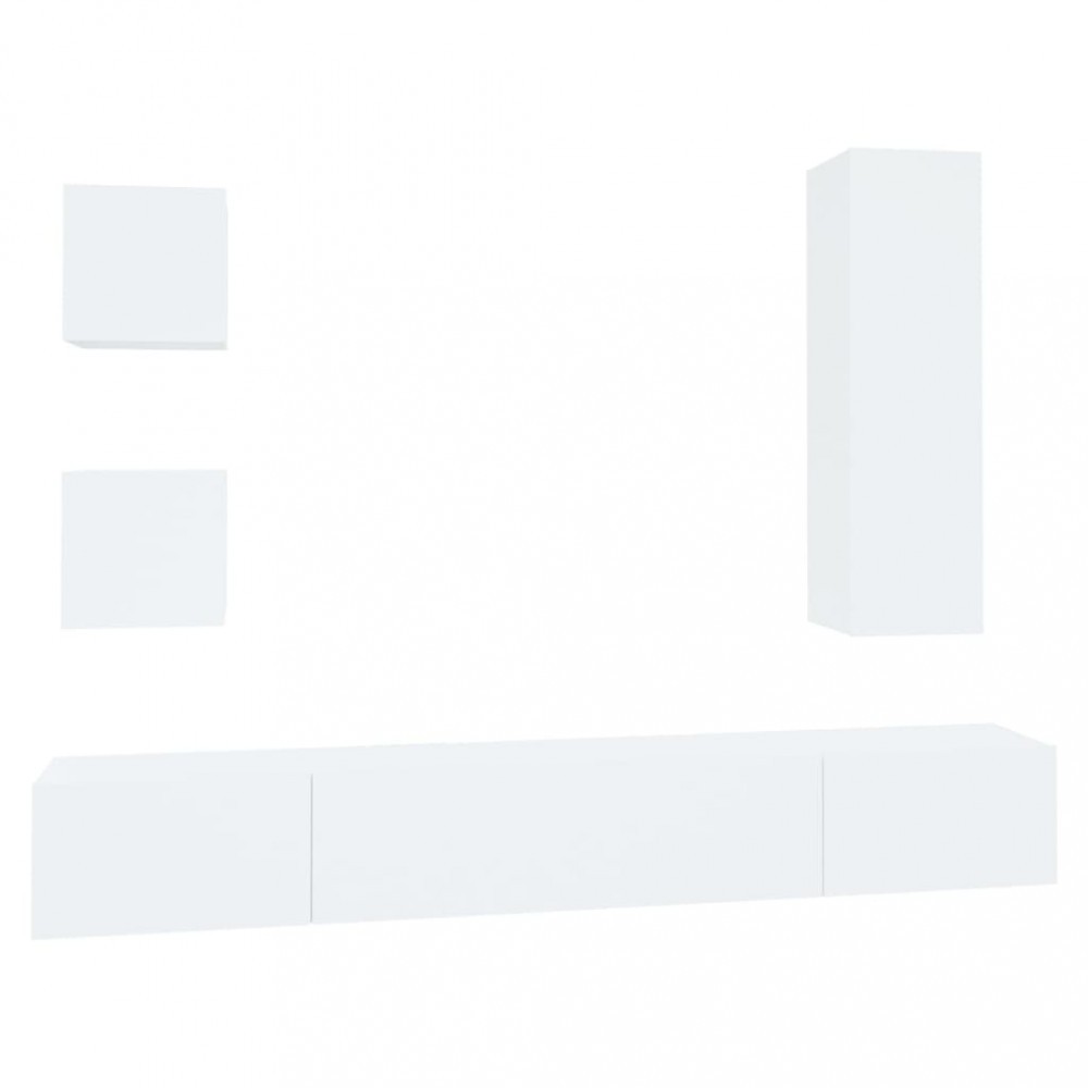 Set dulap TV, 5 piese, alb, lemn prelucrat