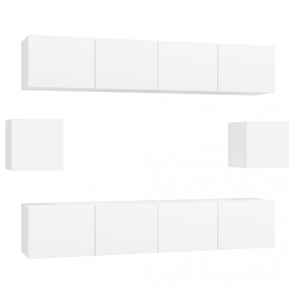 Set dulap TV, 6 piese, alb, lemn prelucrat